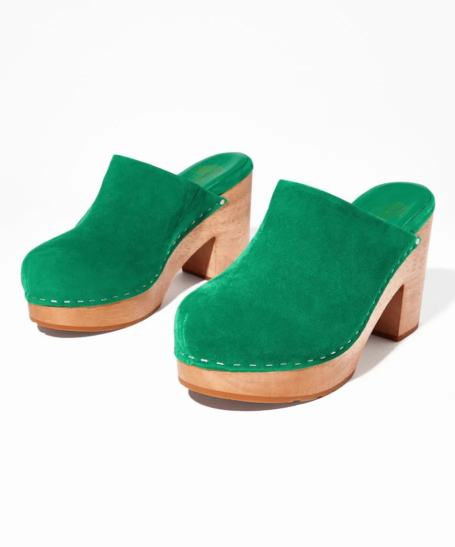 Our Quintessential Best-Selling Heeled Clog. Kid Suede Uppers In A Variety Of Colors, Memory Foam Insole, 2″ Platform And 4″ Heel. When In Doubt, Reach For Marlo—She Definitely Goes With That Outfit.