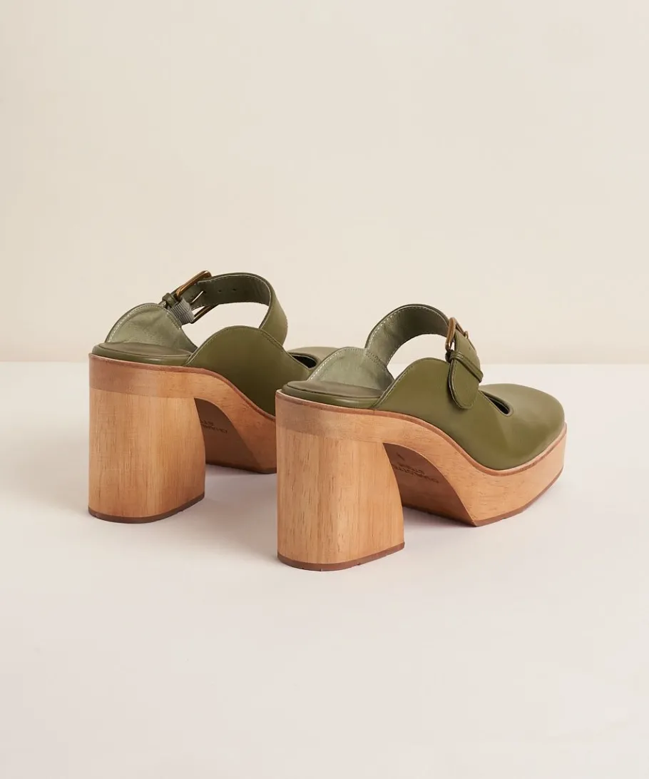 A Mary-Jane Inspired Clog With Franominal Details. Fran’S Blueprint Base, But Wood: Sculpted Heel, 3.75″ With 1″ Platform Height For Comfort, Open Back With All-Leather Uppers And An Oversized Buckle Strap. She’S Like Salted Dark Chocolate, When You Want Something Sweet But Not Really