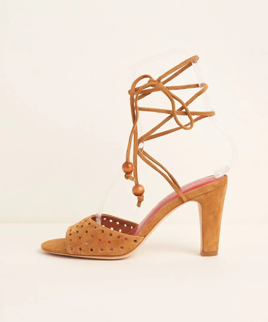 An Elegant And Sexy Going-Out Heel With Perforated Suede Uppers. Sturdy Yet Feminine 3.5″ Heel, All Leather Uppers, Rounded Toe And Leather Ankle Ties With Wood Bead Details. Lionel’S Got Your Date Night Look Wrapped.