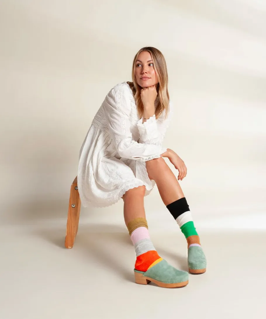 Our Original Best-Selling Low Heel Clog. 2.5″ Heel, 1″ Platform, Memory Foam Insoles, A Kaleidoscope Of Colorways In Suede. When You Think Of A Clog, You’Re Probably Picturing Martino: An Absolute Closet Essential.