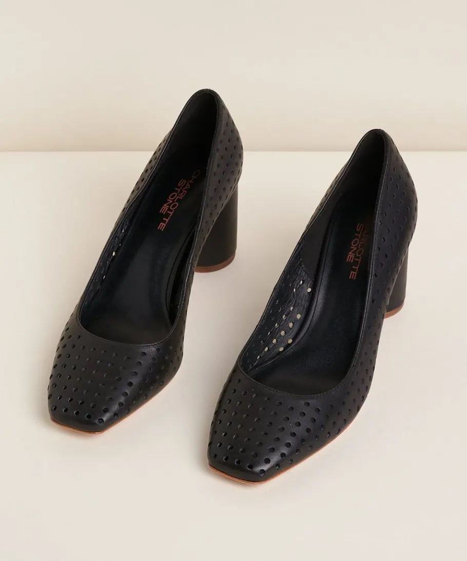 A Brand-New Classic Pump Elevated With Perforated Leather. Same Fit As Risa, With A Leather-Wrapped Cylindrical 2.75″ Heel, Squared Toe, All Leather Uppers And Buffed Leather Outsole. Looking For A Not Basic Basic? Harlie Is Perf.