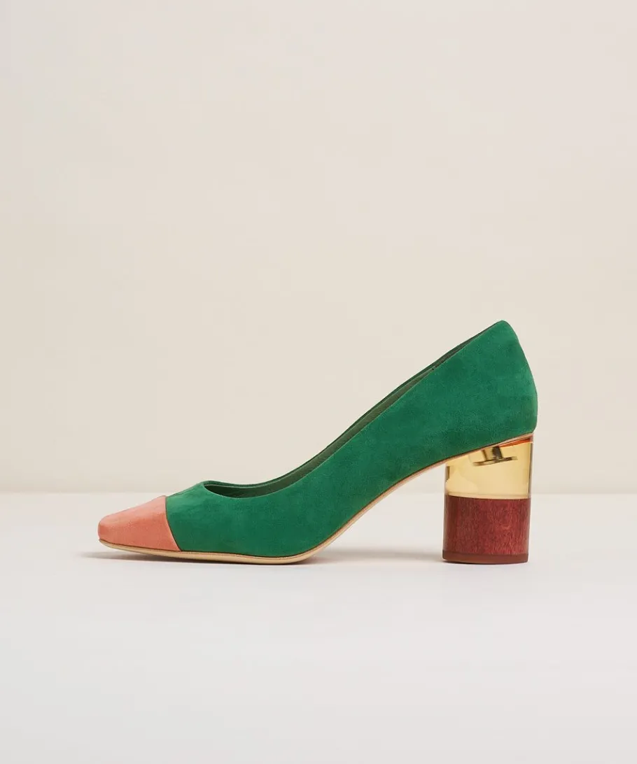A Bold, Stacked Heel Rich With Mismatch Colorblocking. Dyed Wood And Color Blocked Resin Heels, Vibrant Suede Uppers, Contrasting Toe Caps, 2.75″ Heel. Wear These To Moma And People Will Think You’Re Part Of The Exhibit.