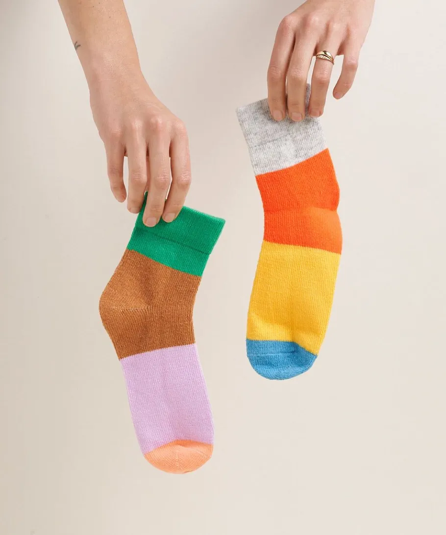 A New Color Blocked Crew Sock. Your Shoes Just Got A Multi-Color Companion To Elevate Their Mismatch Energy.